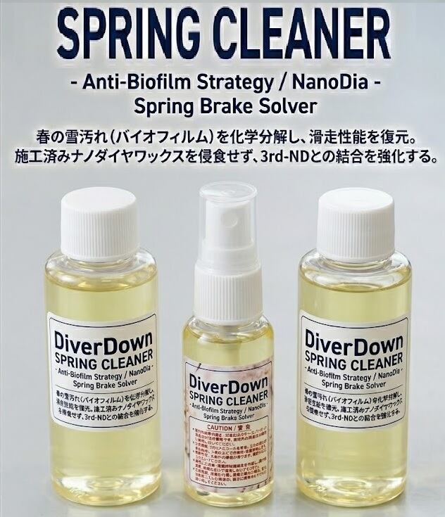 春の特有の粘つく雪汚れ(バイオフィルム)を化学分解し、滑走性能を復元します。